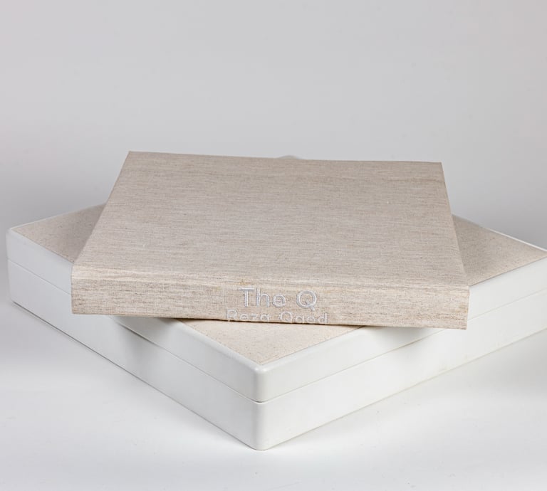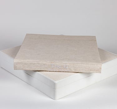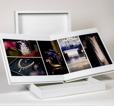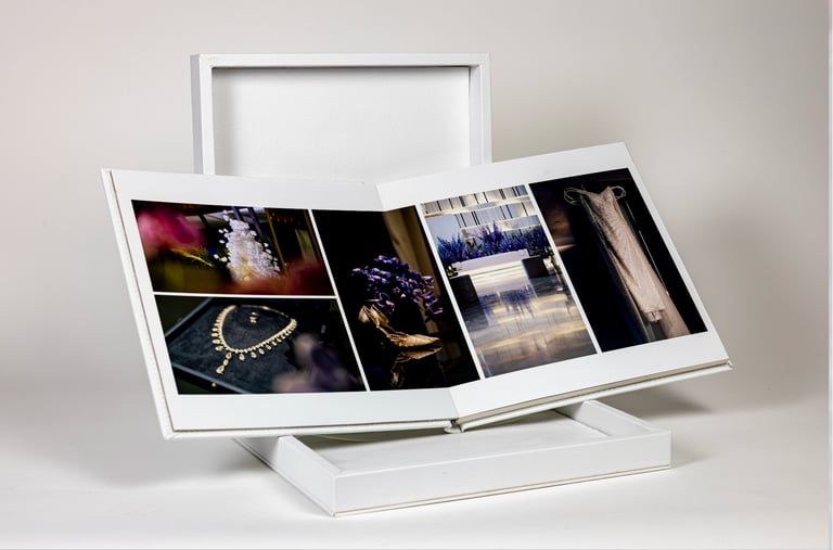 Handcrafted luxury albums designed to hold your most cherished moments in soft, neutral hues.